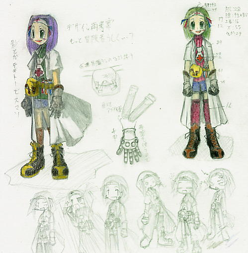この時は何故かチェック柄。二次ラフの段階で白衣に変更される。