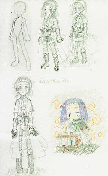 1つ目。最初にキャライメージを適当に考えながら描いたラフ。